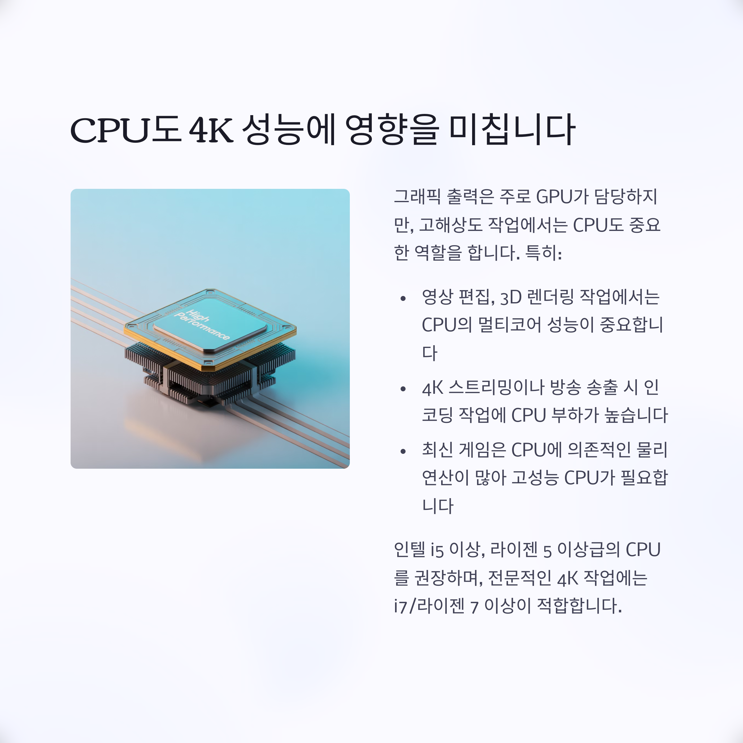 그래픽 출력은 GPU가 담당하지만, 고해상도 작업에서는 CPU가