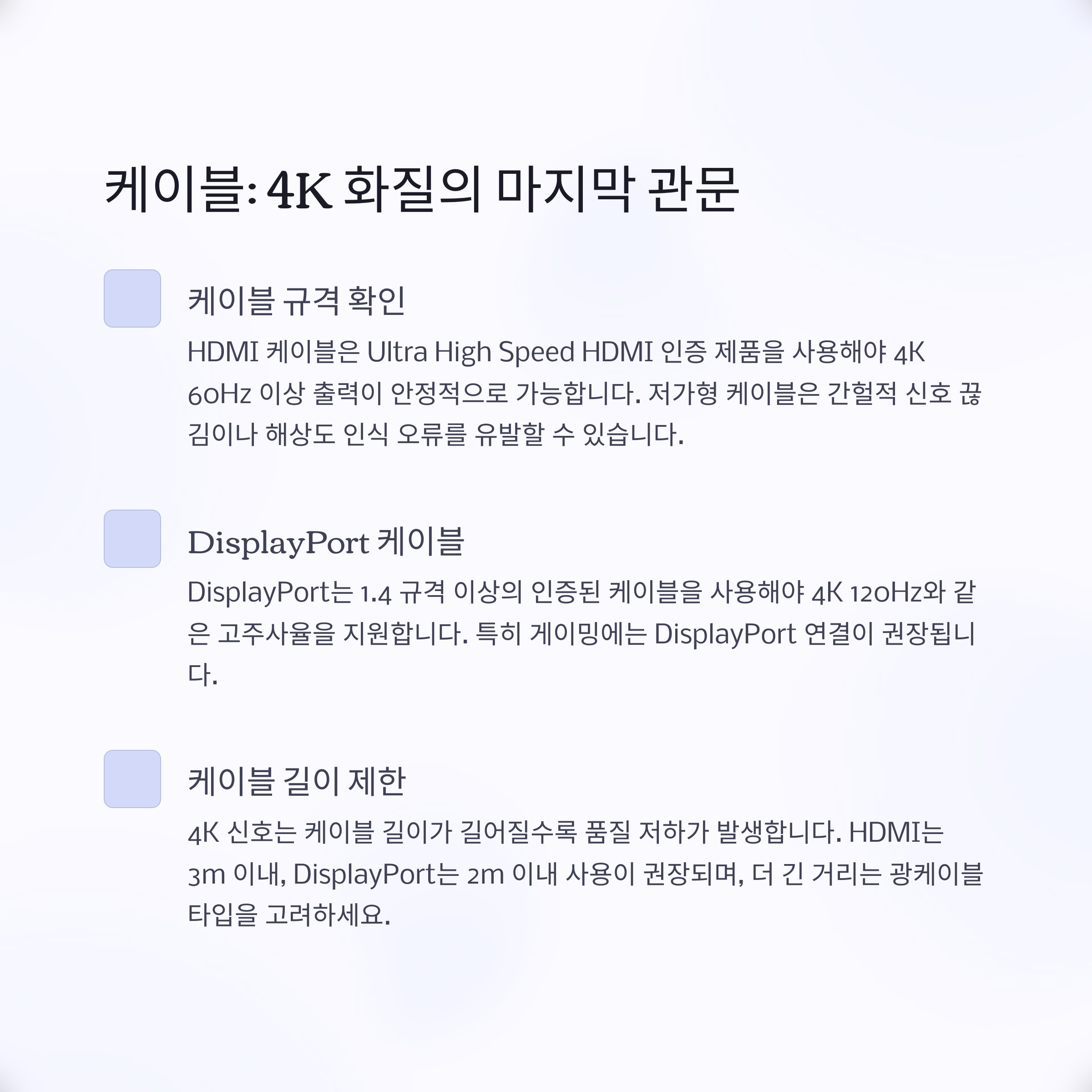 사용해야 4K 60Hz 이상이 안정적으로 출력됩니다. 저가형