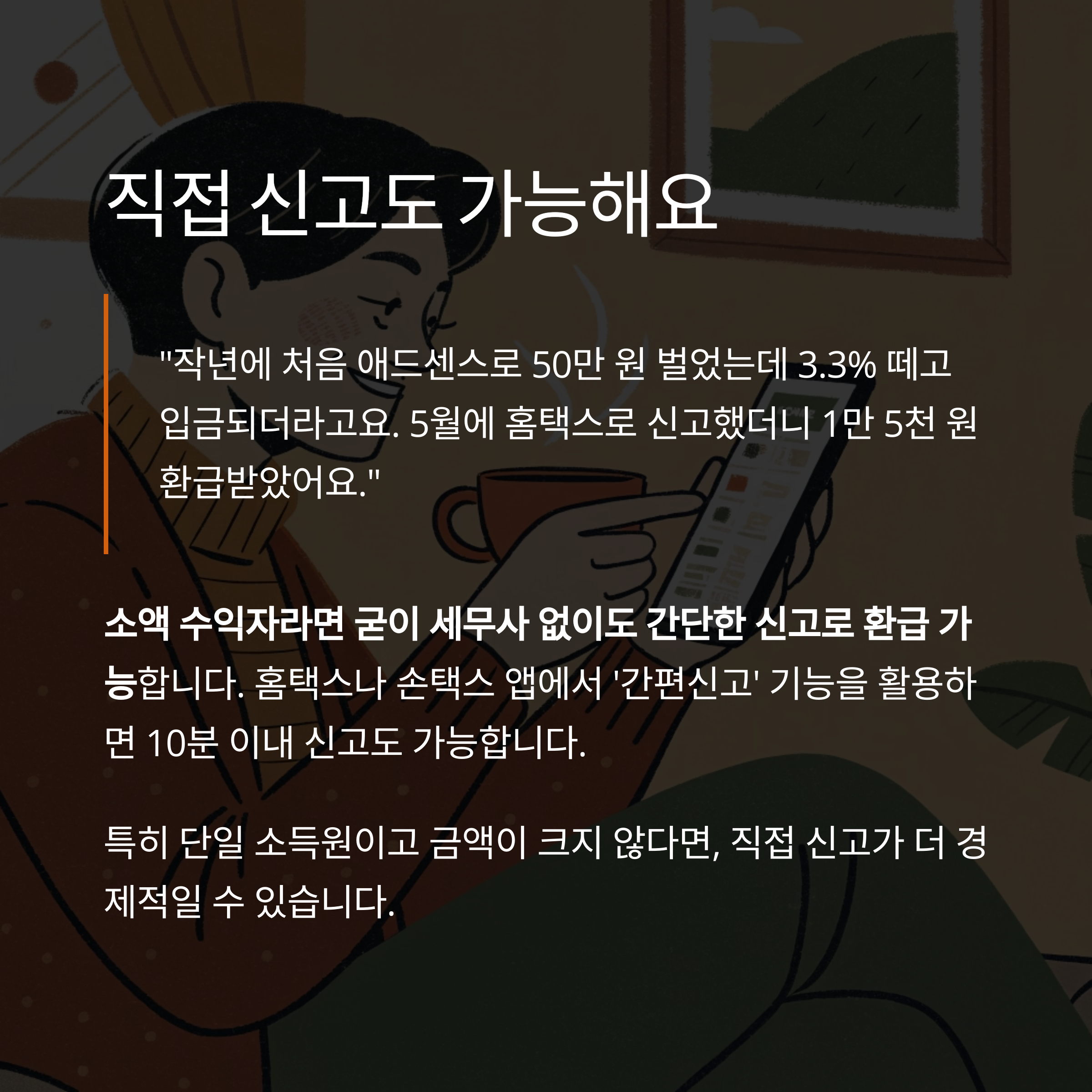 소액 수익자라면 굳이 세무사 없이도 간단한 신고로 환급 가능합니다.
