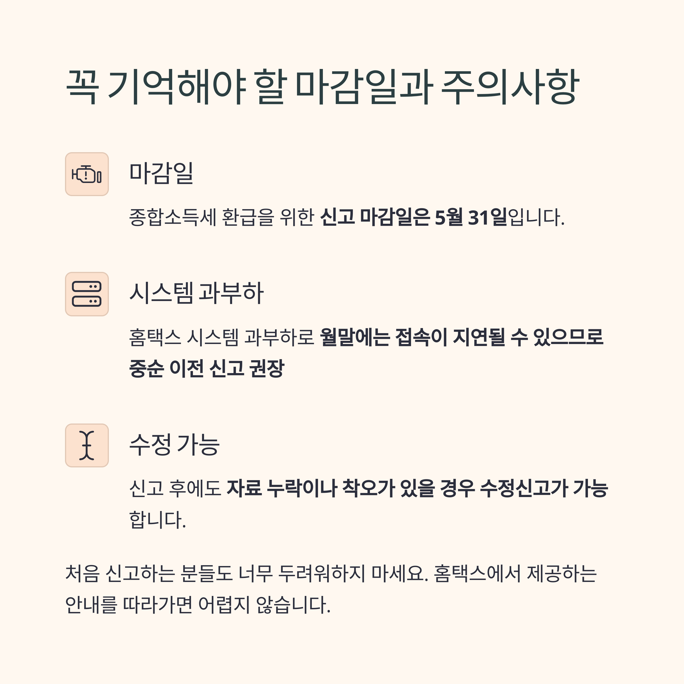 신고 후에도 자료 누락이나 착오가 있을 경우 수정신고가 가능하니, 너무 두려워하지 마세요.