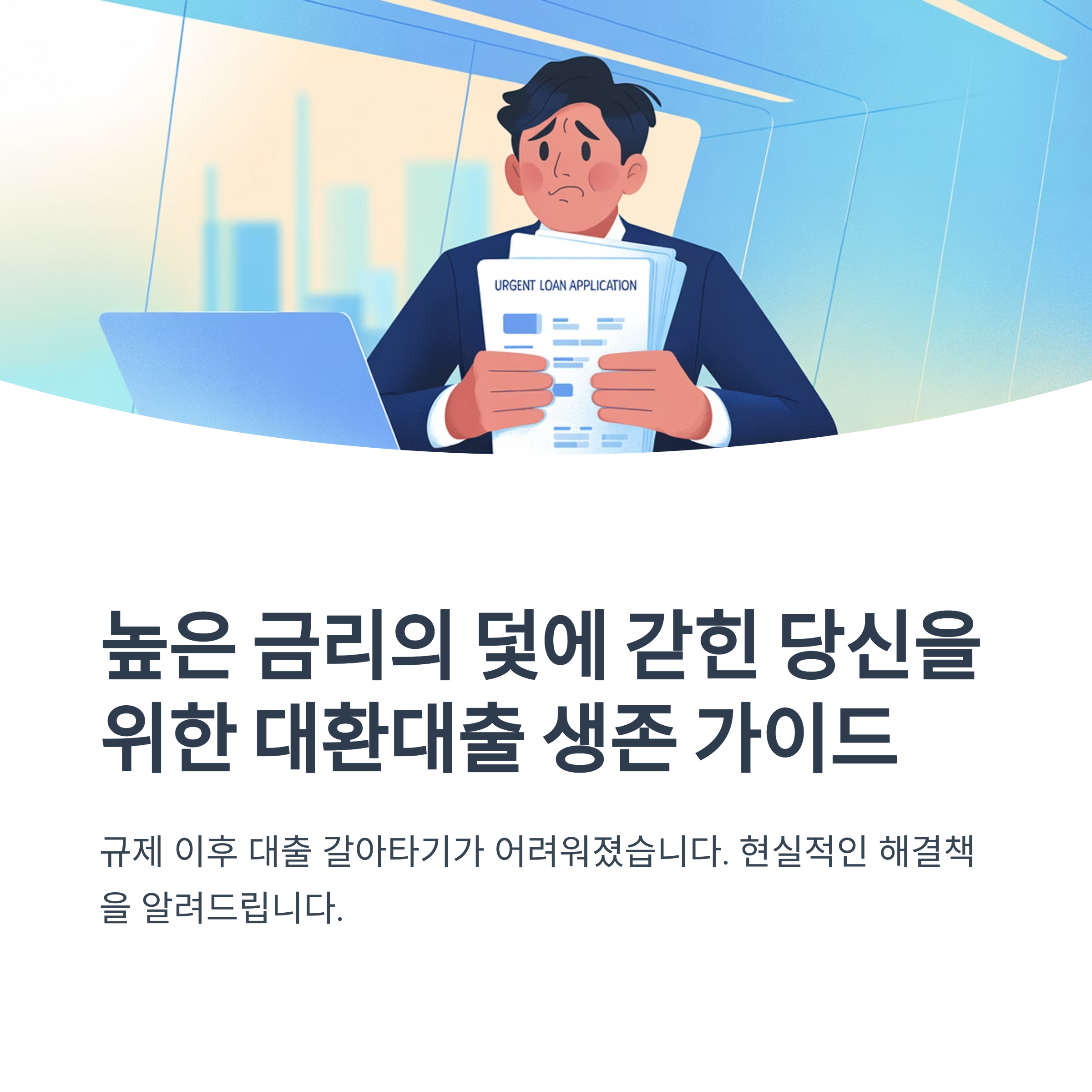 2020년, 저금리에 혹해 주택담보대출을 받은 김과장. 하지만 시간이 흘러 금리가 5%에 육박하면서 갈아타기를 고민하게 됩니다. 더 좋은 조건의 대출 상품이 있음에도 불구하고 김과장은 '6·27 대출 규제'의 벽에 가로막히게 됩니다. 같은 은행에선 옮길 수 있어도, 타행은 사실상 불가능해진 현실. 대환대출의 본래 목적이 흐려지면서 김과장은 점점 더 깊은 이자 수렁에 빠져듭니다. 김과장의 하루는 이렇게 시작됐습니다.
