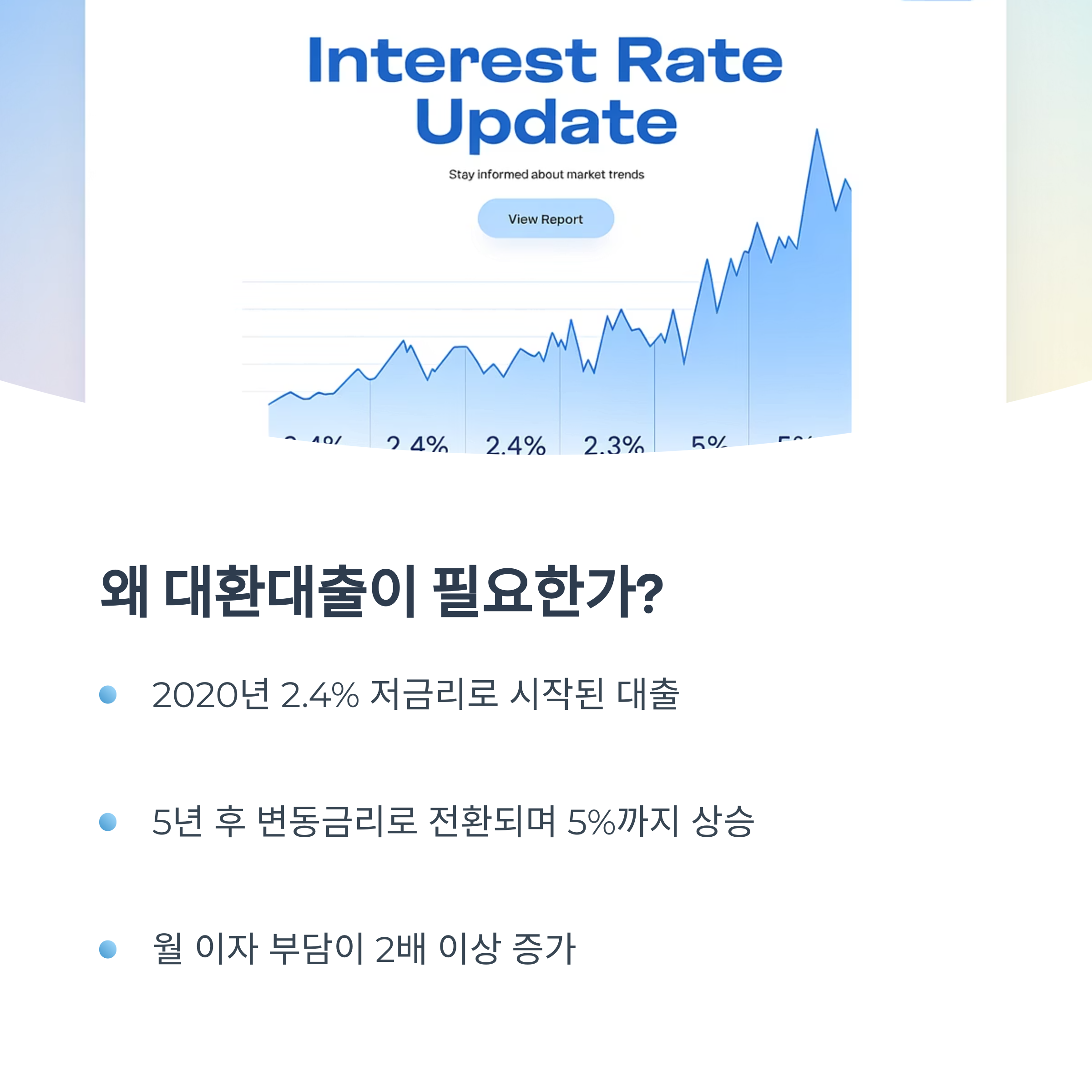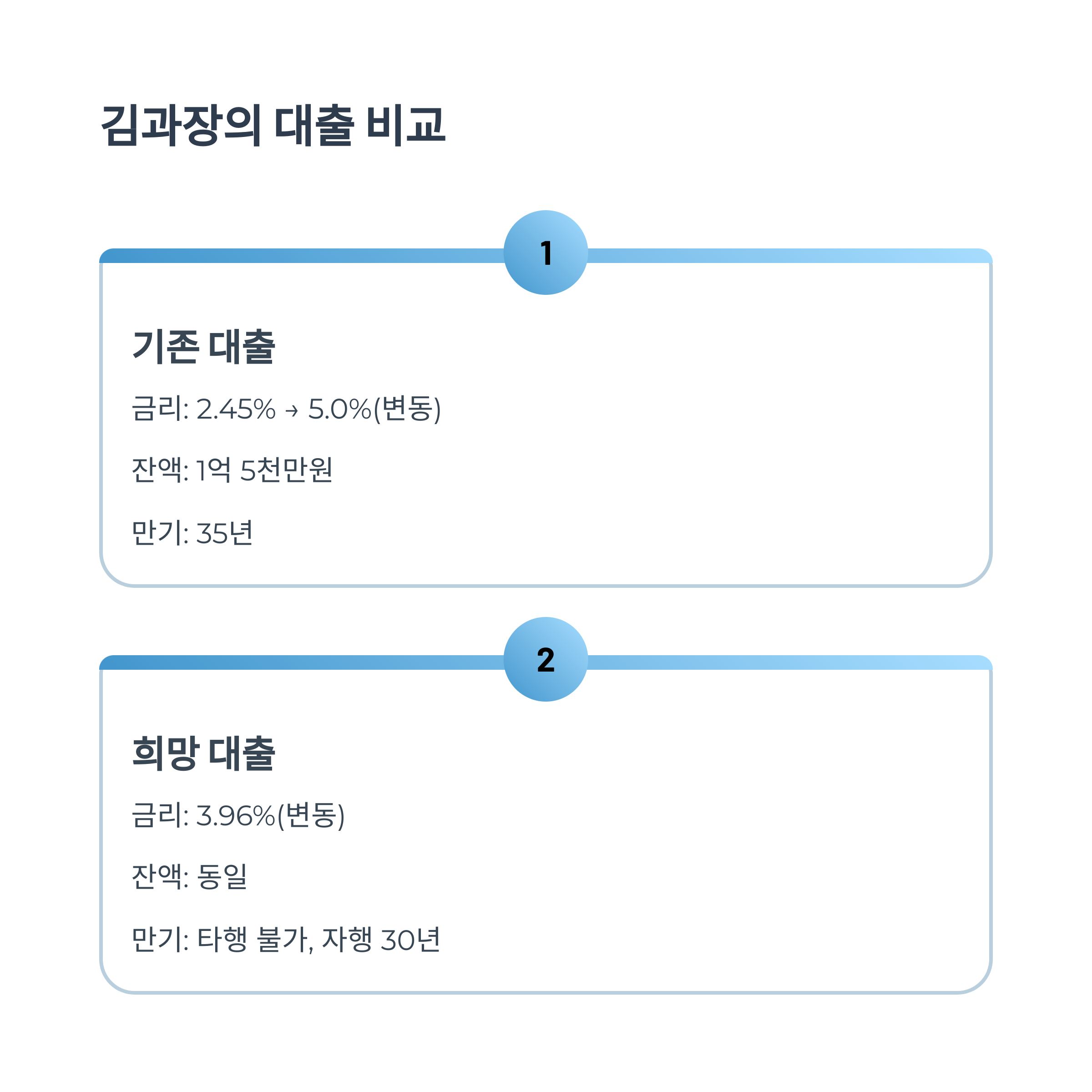| 금리 | 2.45% (고정) → 5.0% (변동) | 3.96% (변동) |