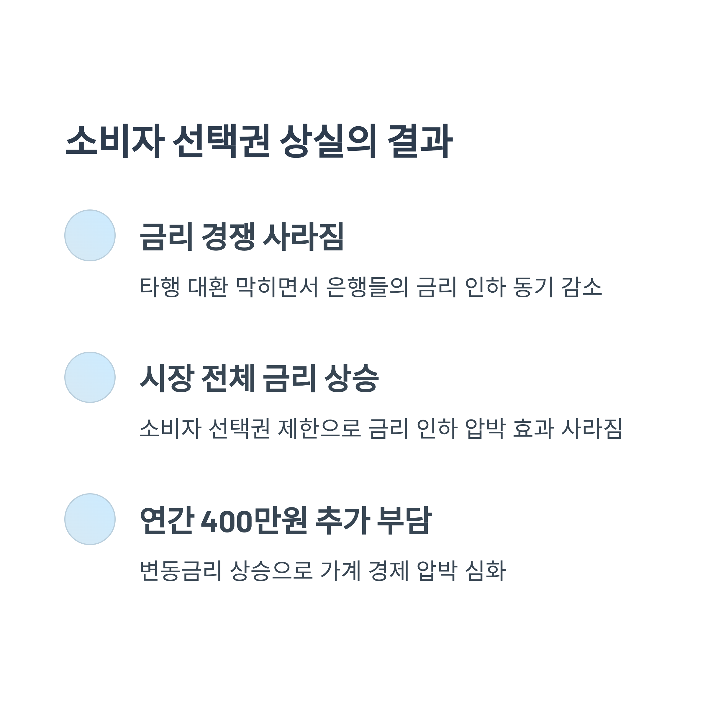 소비자 선택권도, 금리 인하 압박도 모두 사라진 셈이다.