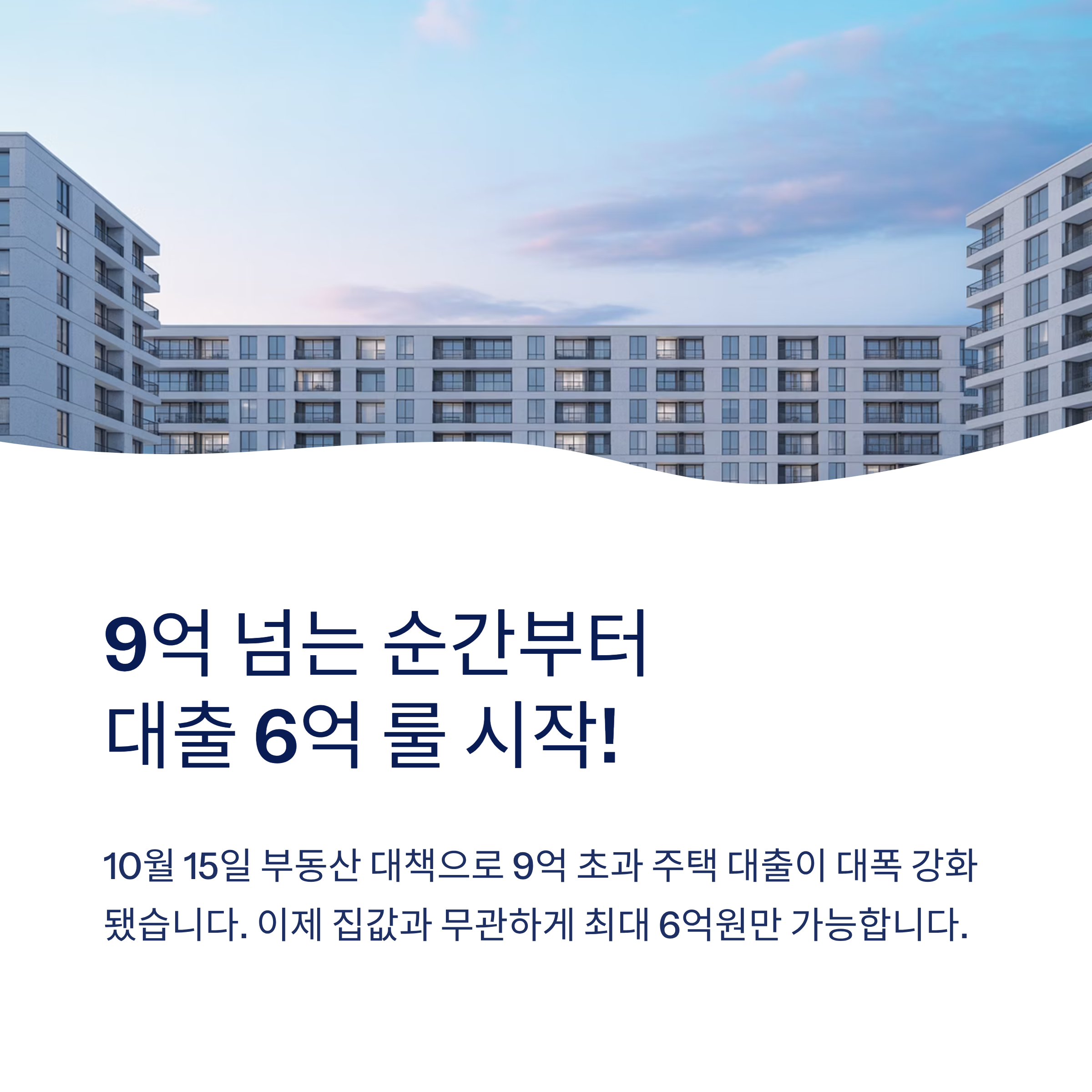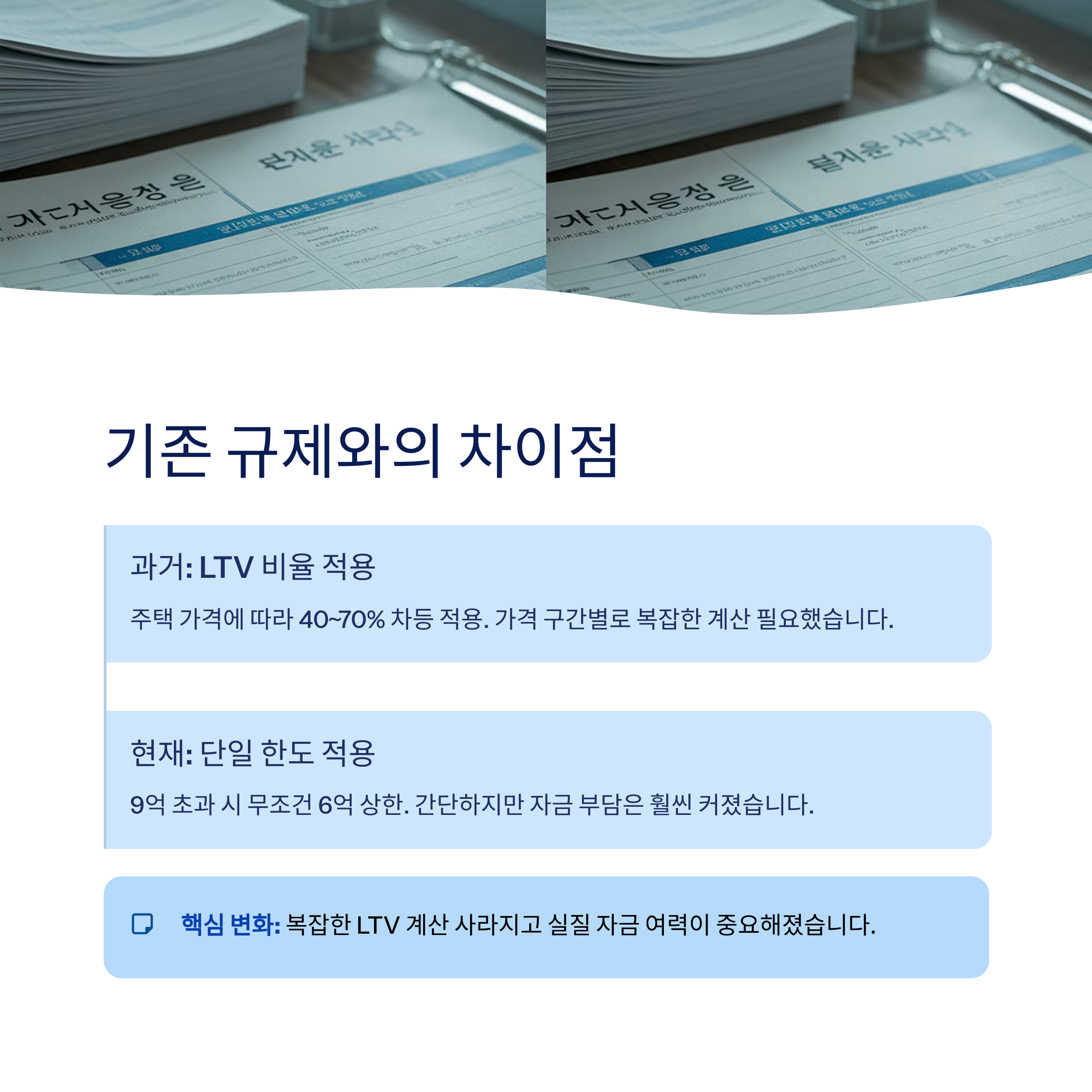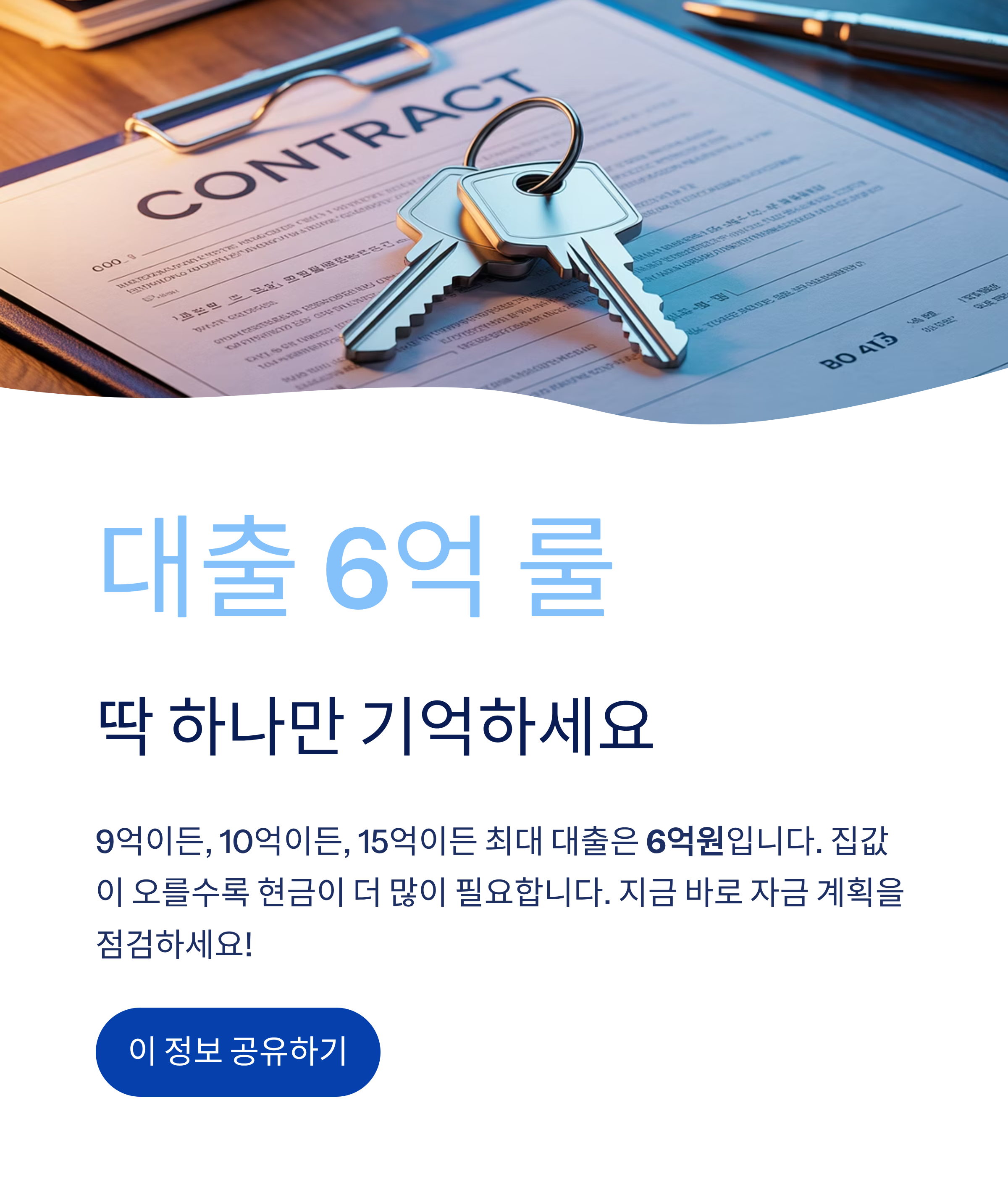 이제는 주택 가격이 9억이든, 15억이든 상관없이 '최대 6억원까지만 대출 가능'하다는 단일 기준이 적용됩니다.
