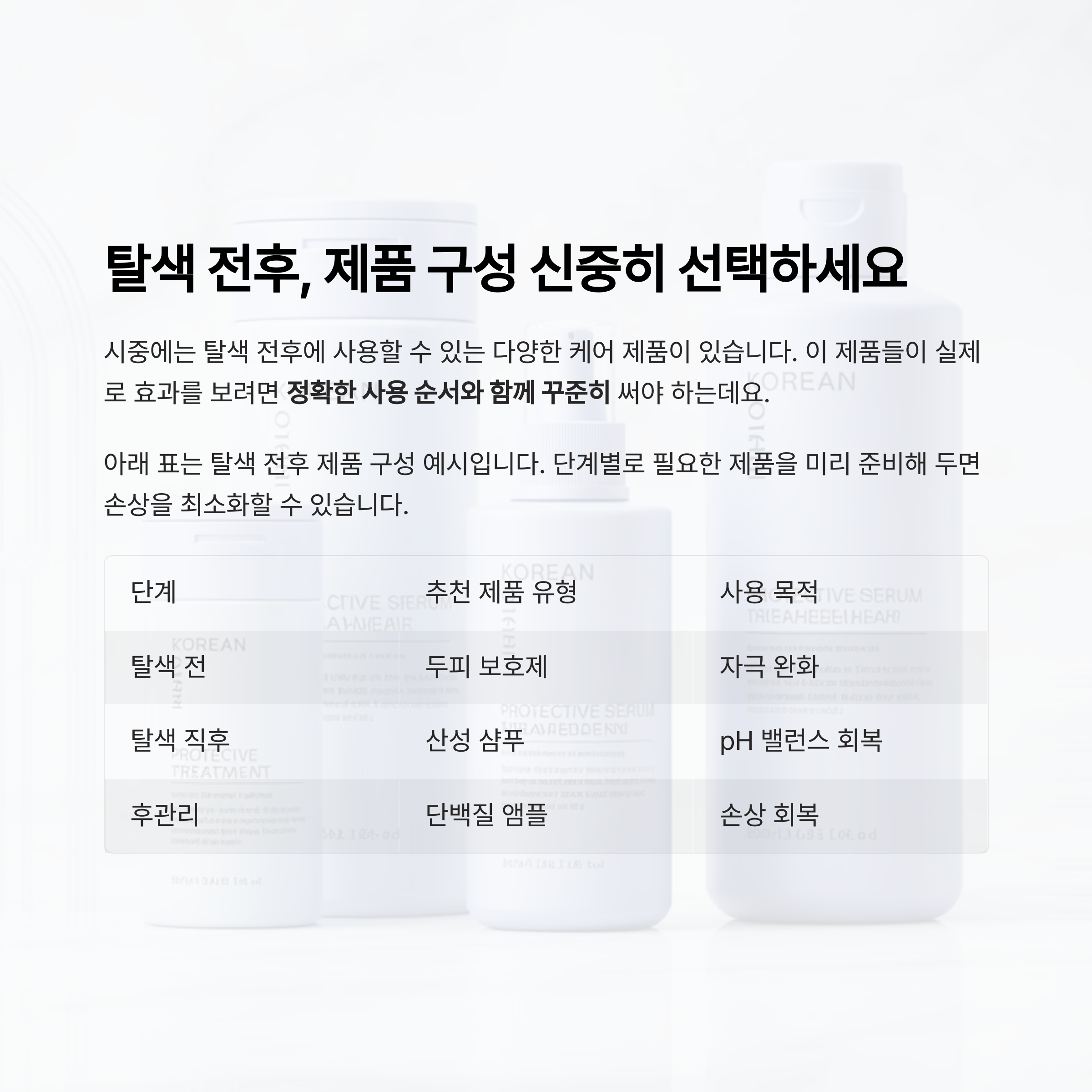 탈색 전후, 제품 구성 신중히 선택하세요