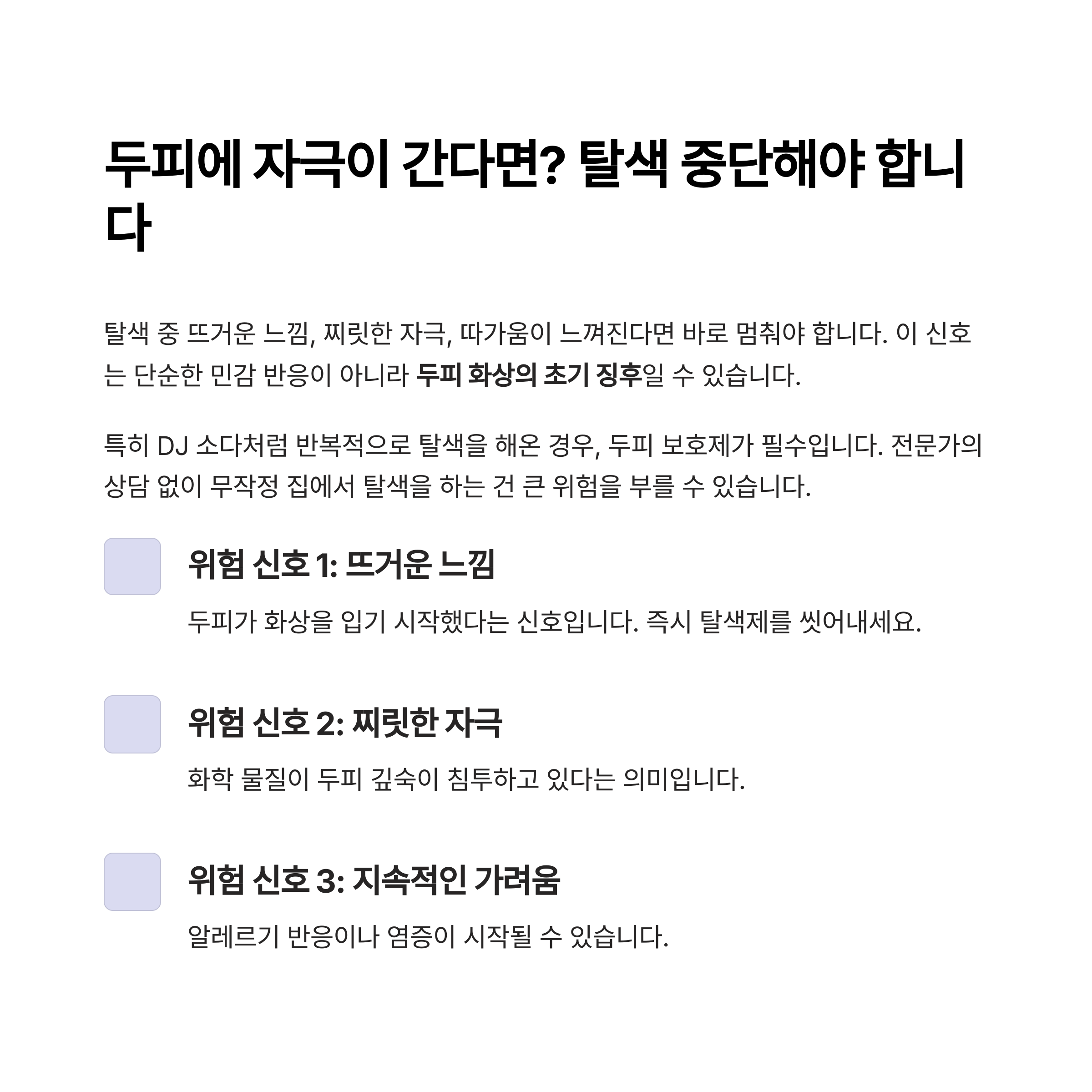 이 신호는 단순한 민감 반응이 아니라 두피 화상의 초기 징후일 수 있습니다.
