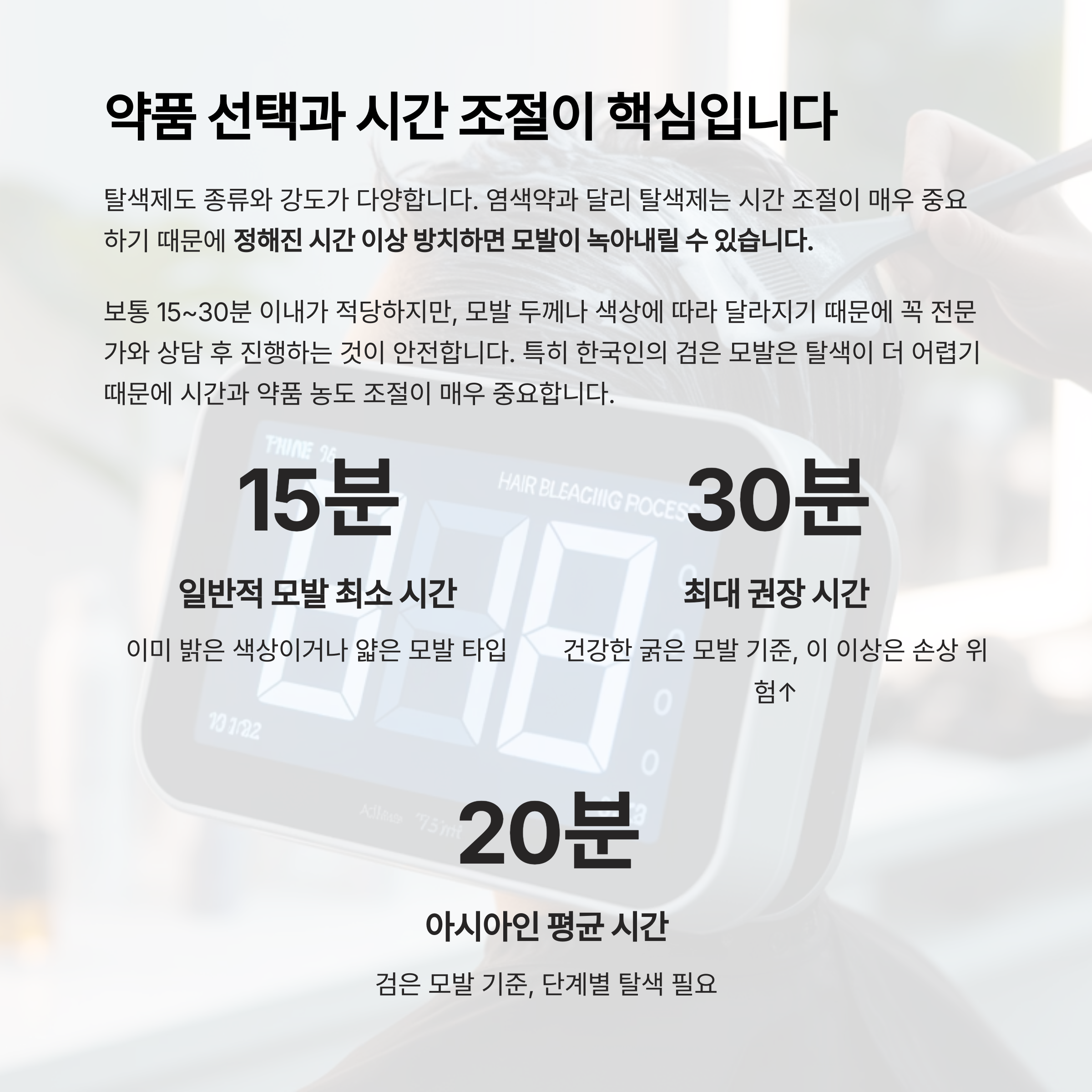 염색약과 달리 탈색제는 시간 조절이 매우 중요하기 때문에