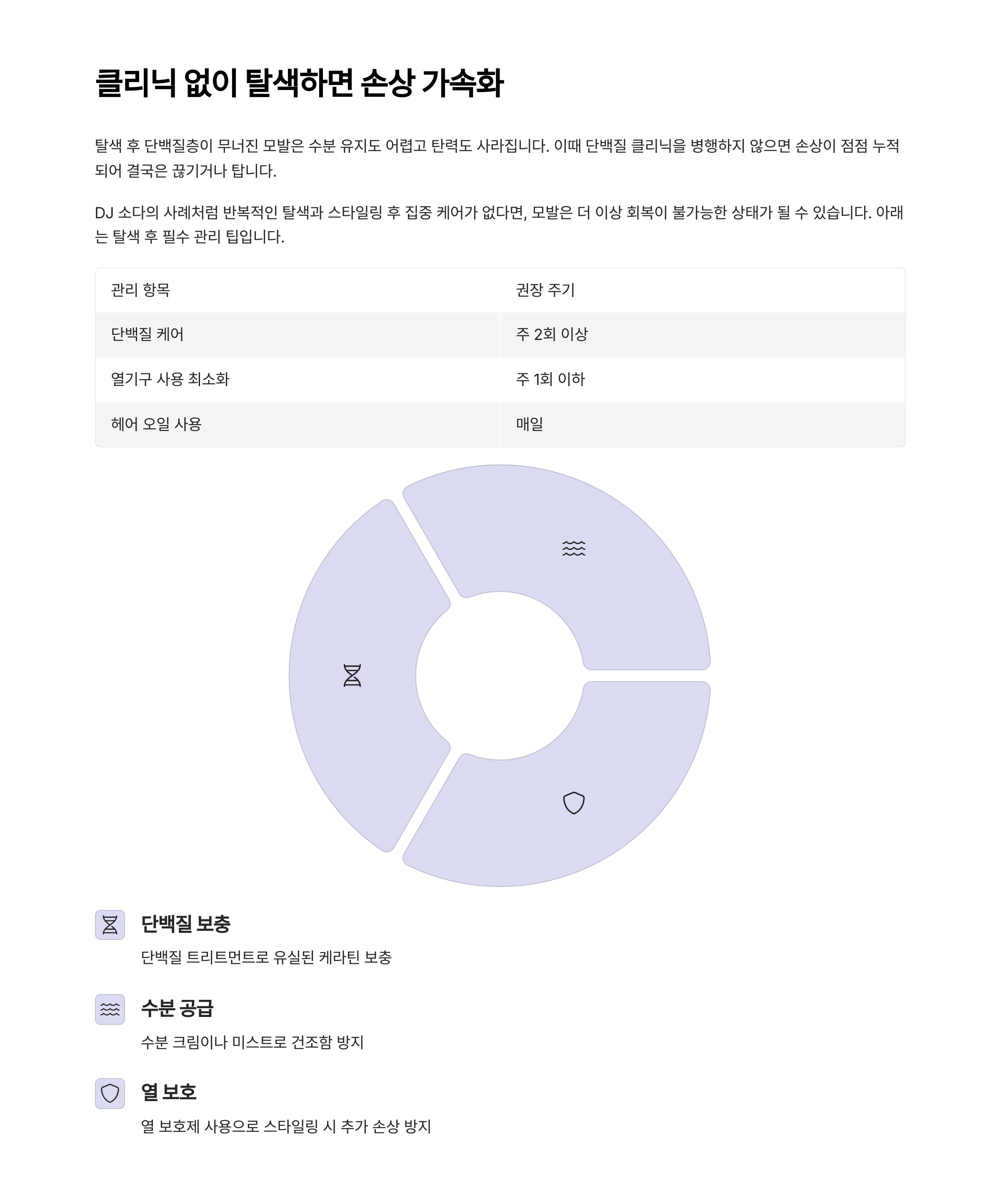 | 탈색 직후 | 산성 샴푸 | pH 밸런스 회복 |