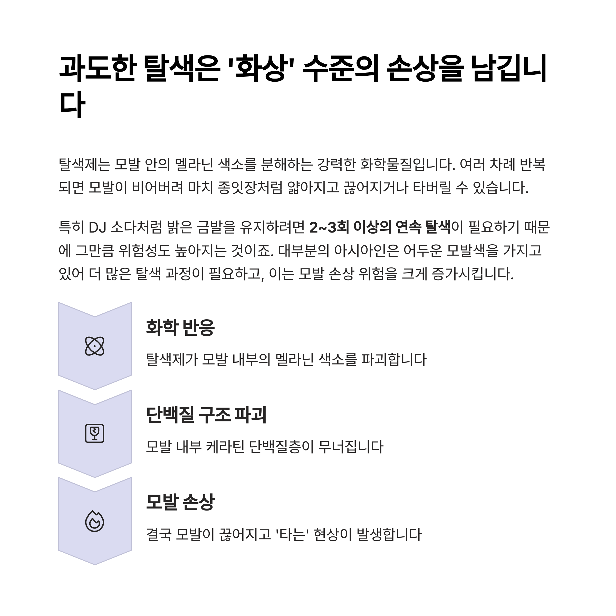 과도한 탈색은 '화상' 수준의 손상을 남깁니다