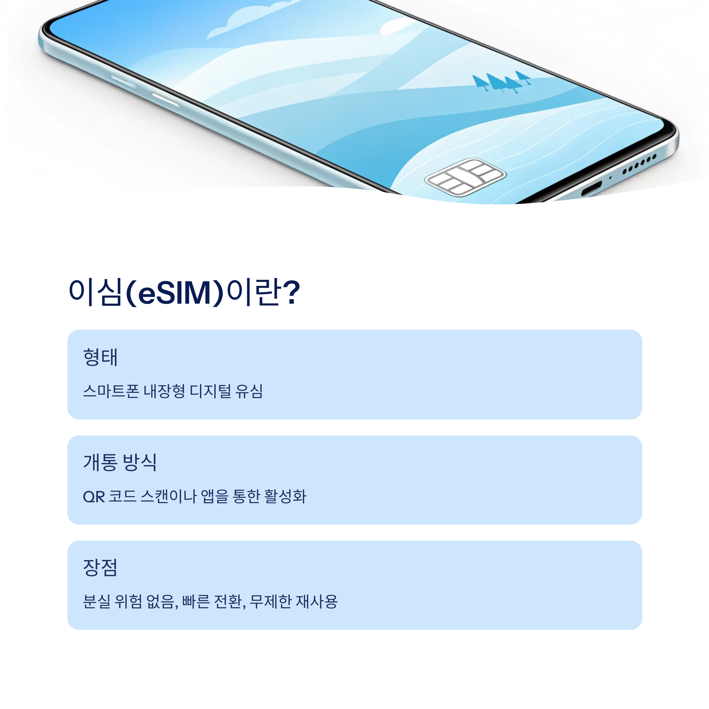| 개통 방식 | 직접 교체 | QR 코드 또는 앱 |