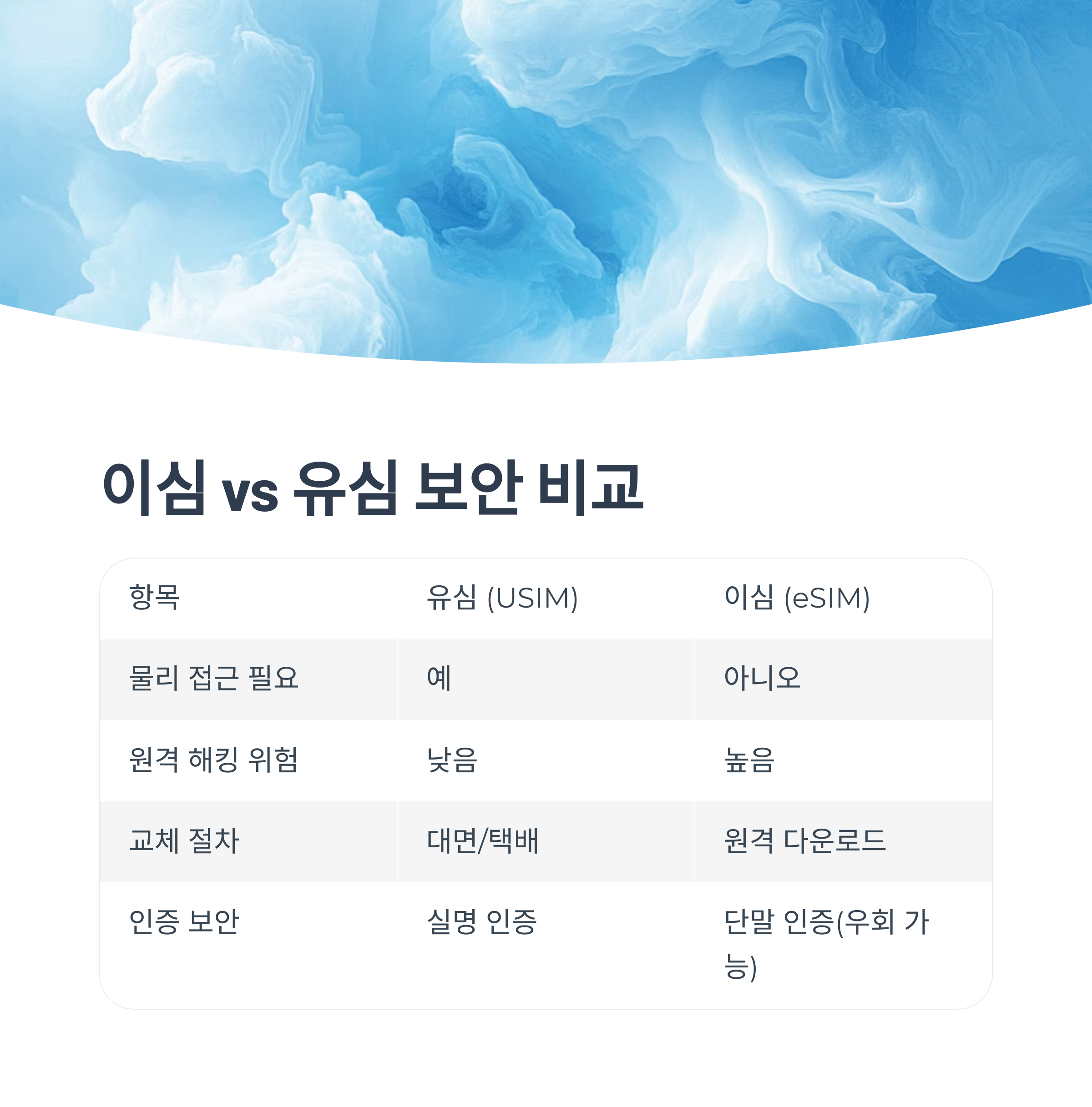 이심과 유심의 보안 비교 표