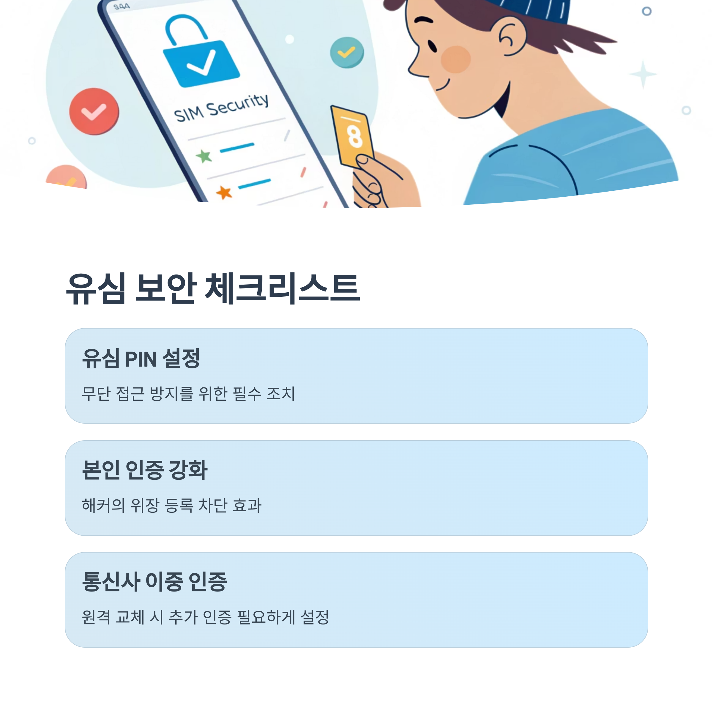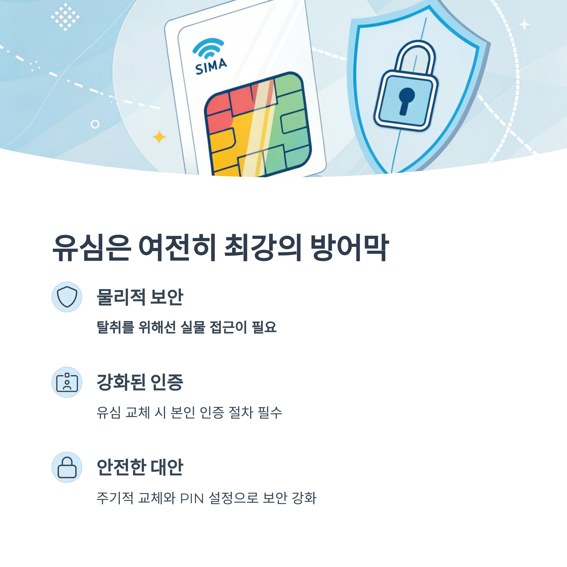 따라서, 물리 유심을 주기적으로 교체하거나 PIN 설정을 강화하는 것이 훨씬 안전합니다.
