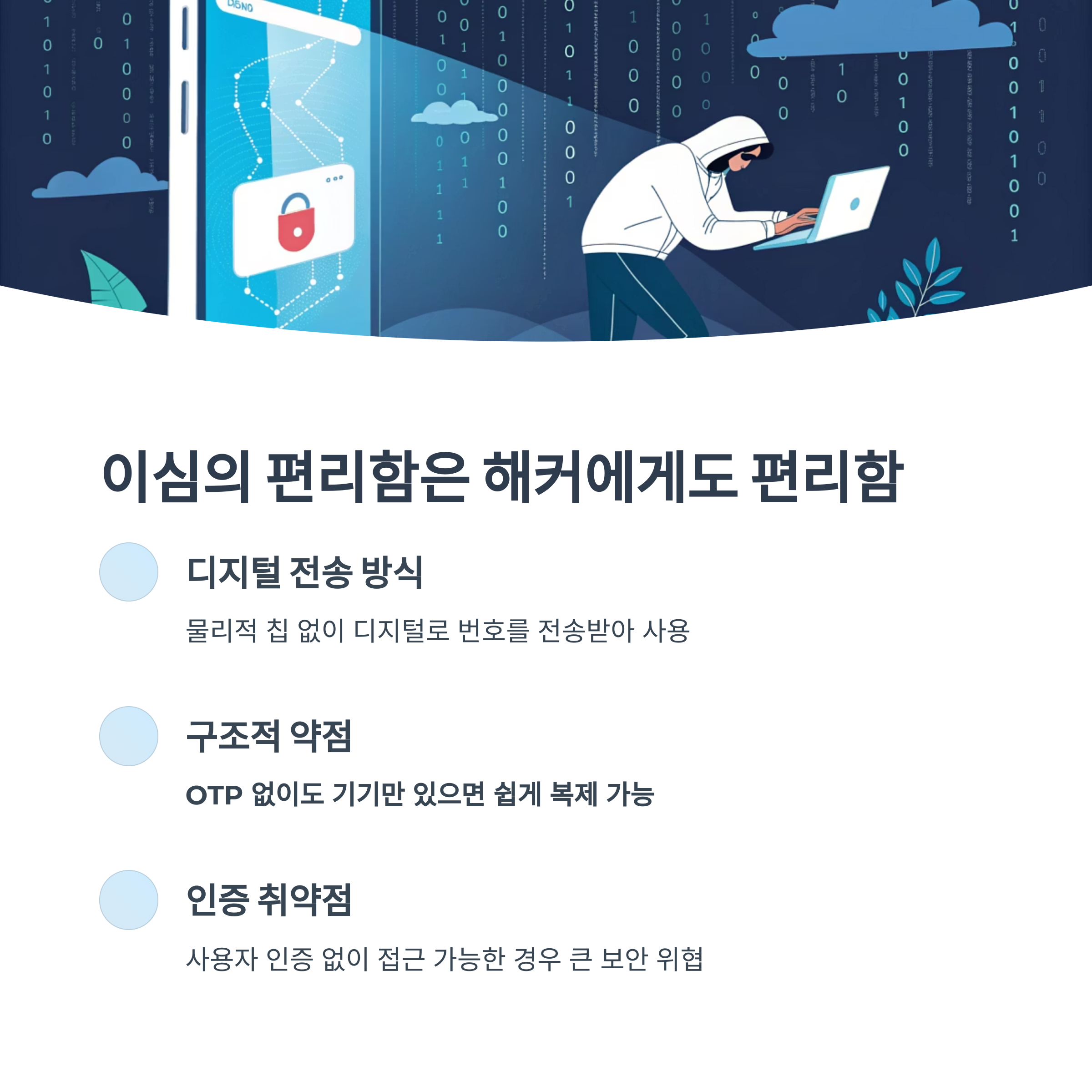"OTP 없이도 기기만 있으면 쉽게 복제 가능"하다는 구조적 약점이 존재하며,