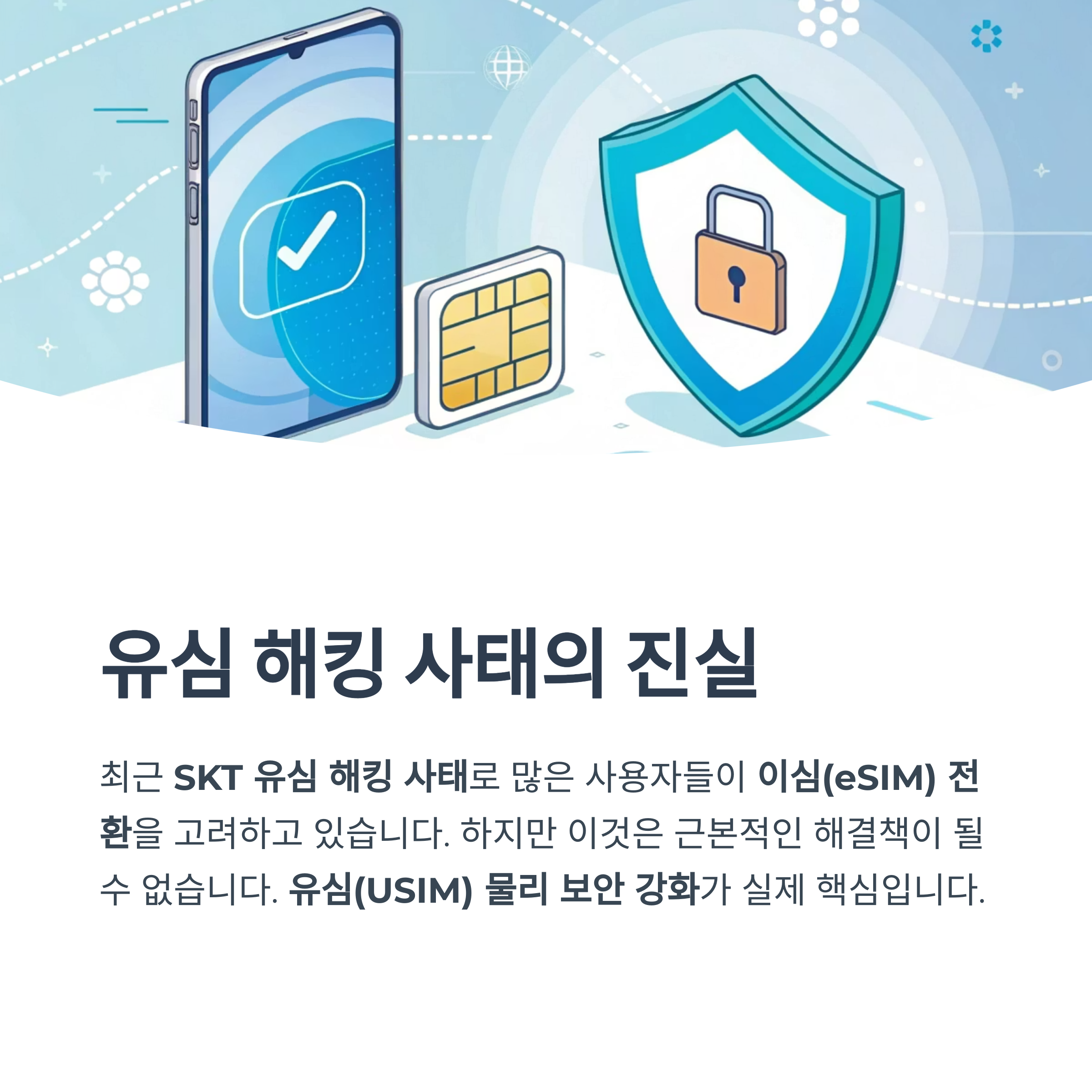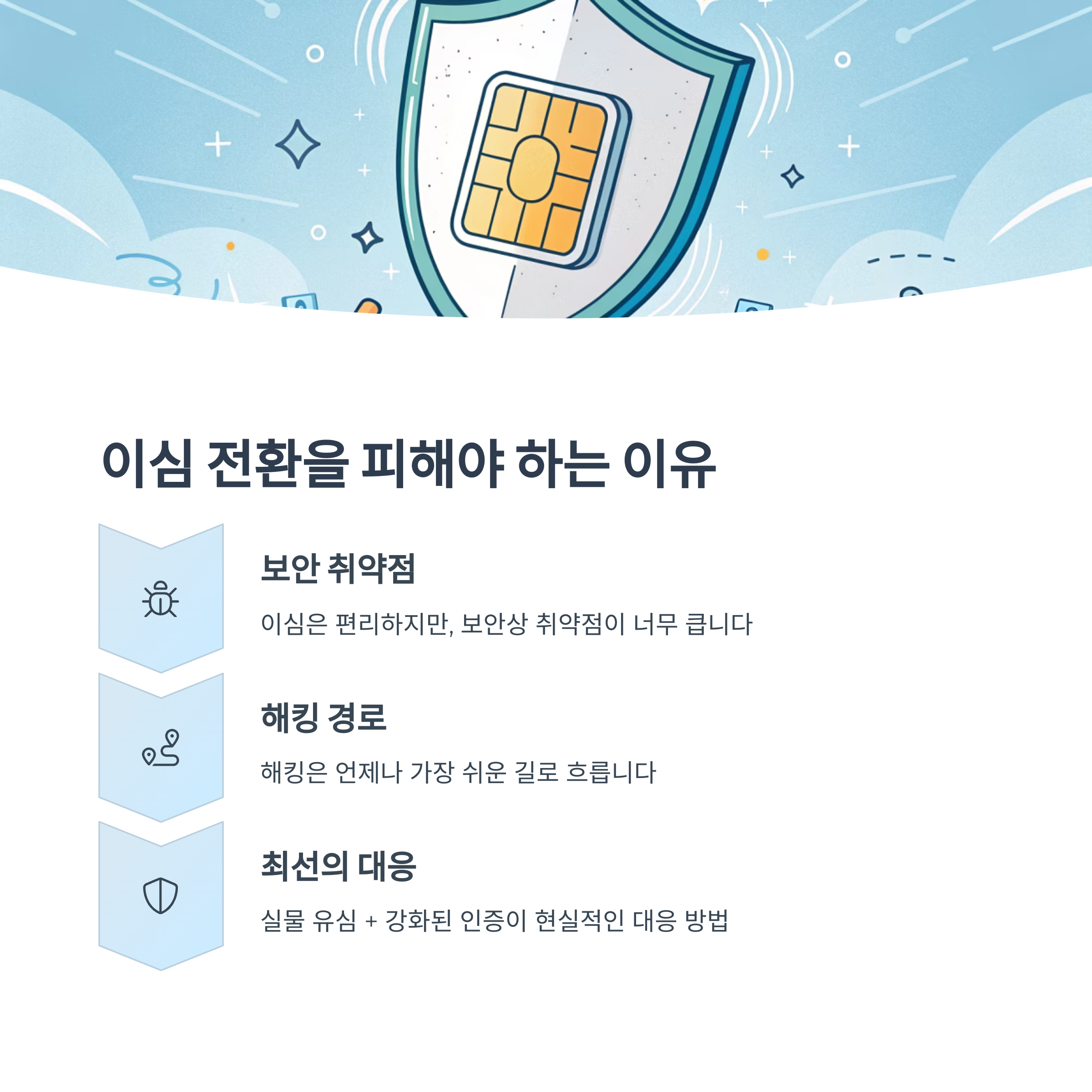 하지만 이심 교체는 근본적인 해결책이 될 수 없습니다. 오히려 유심(USIM) 물리 보안 강화가 핵심입니다.