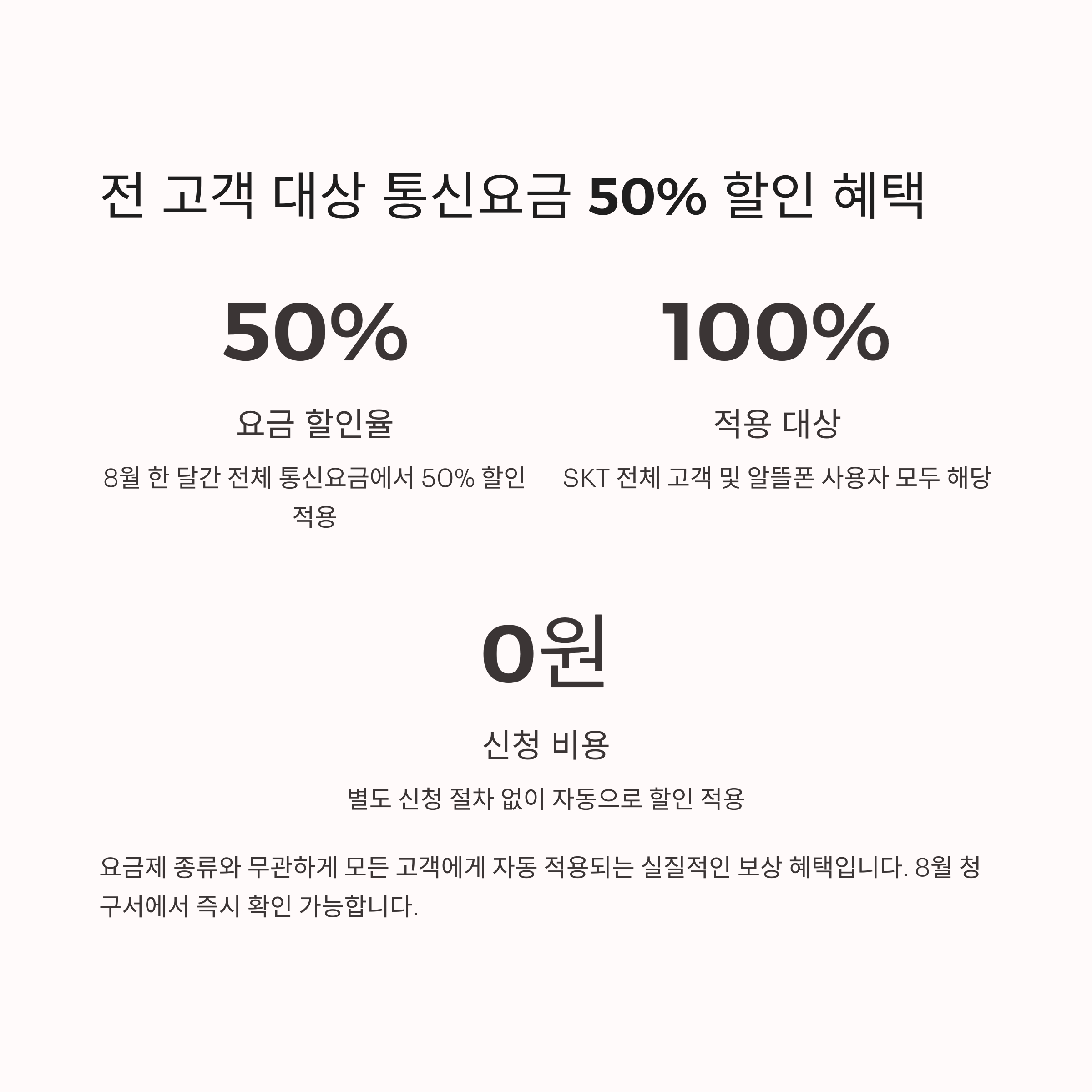 | 통신요금 50% 할인 적용일 | 2025년 8월 한 달간 |