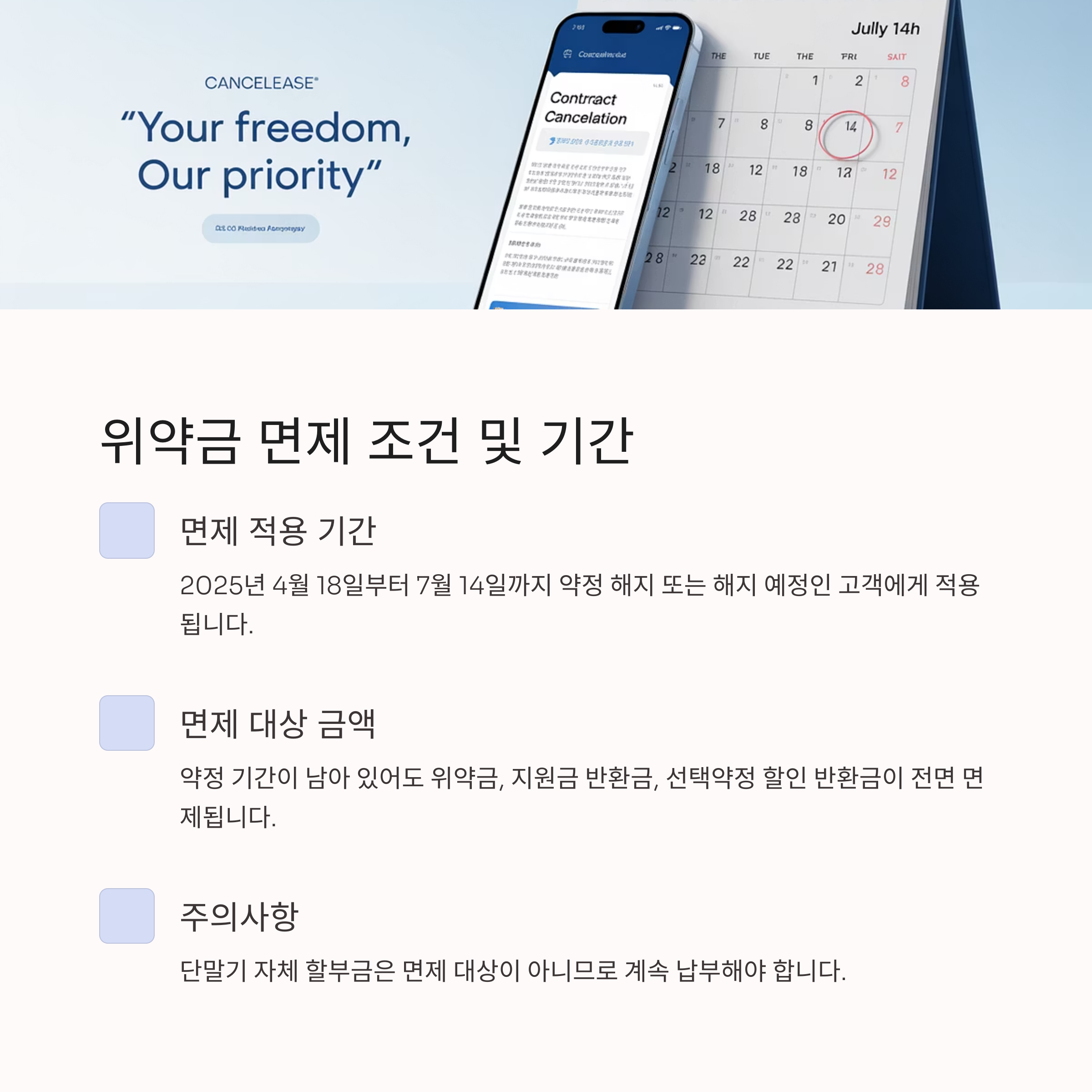 해당 위약금 면제는 2025년 4월 18일부터 7월 14일까지