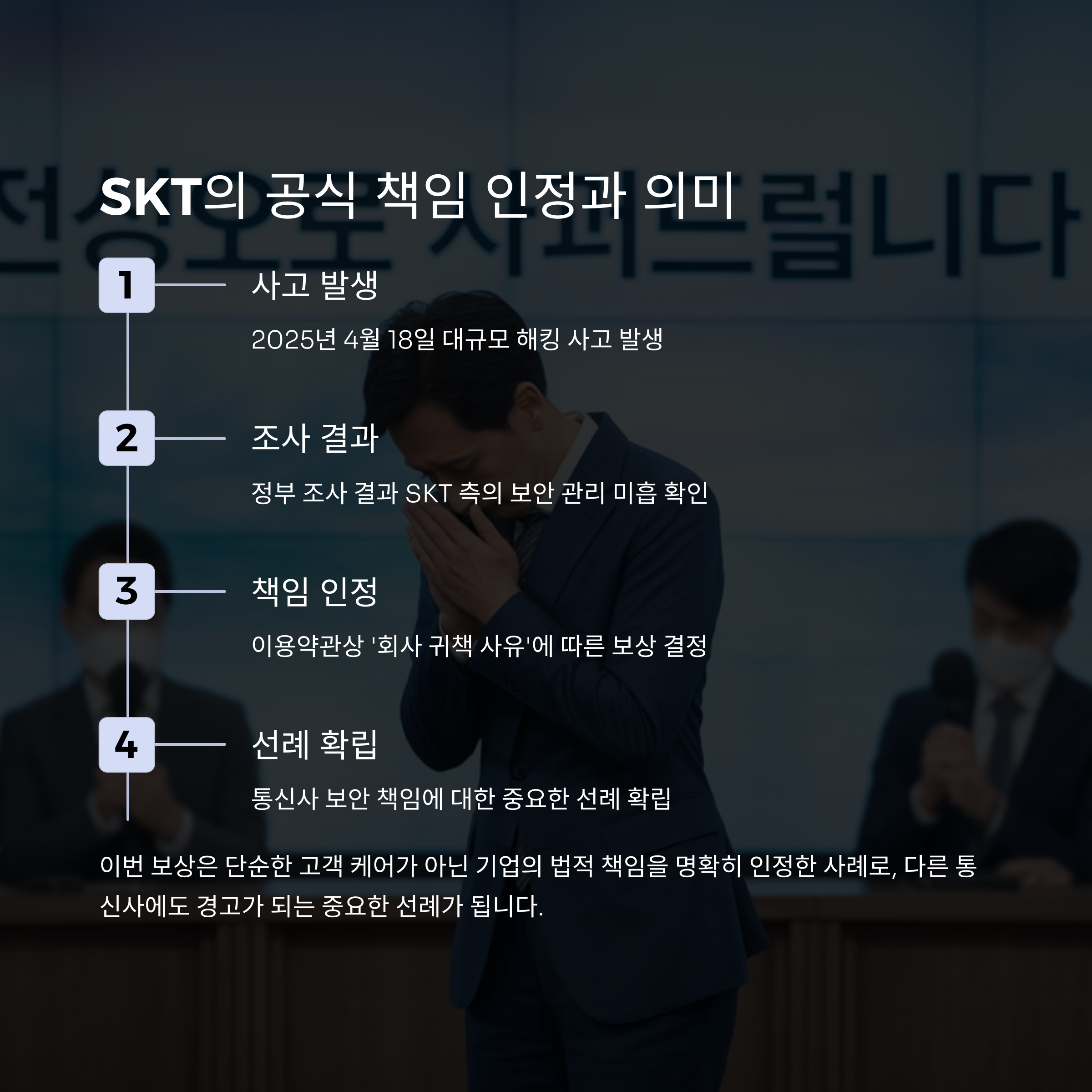 SK텔레콤은 2025년 4월 18일 발생한 대규모 해킹 사고의 책임을 인정하며