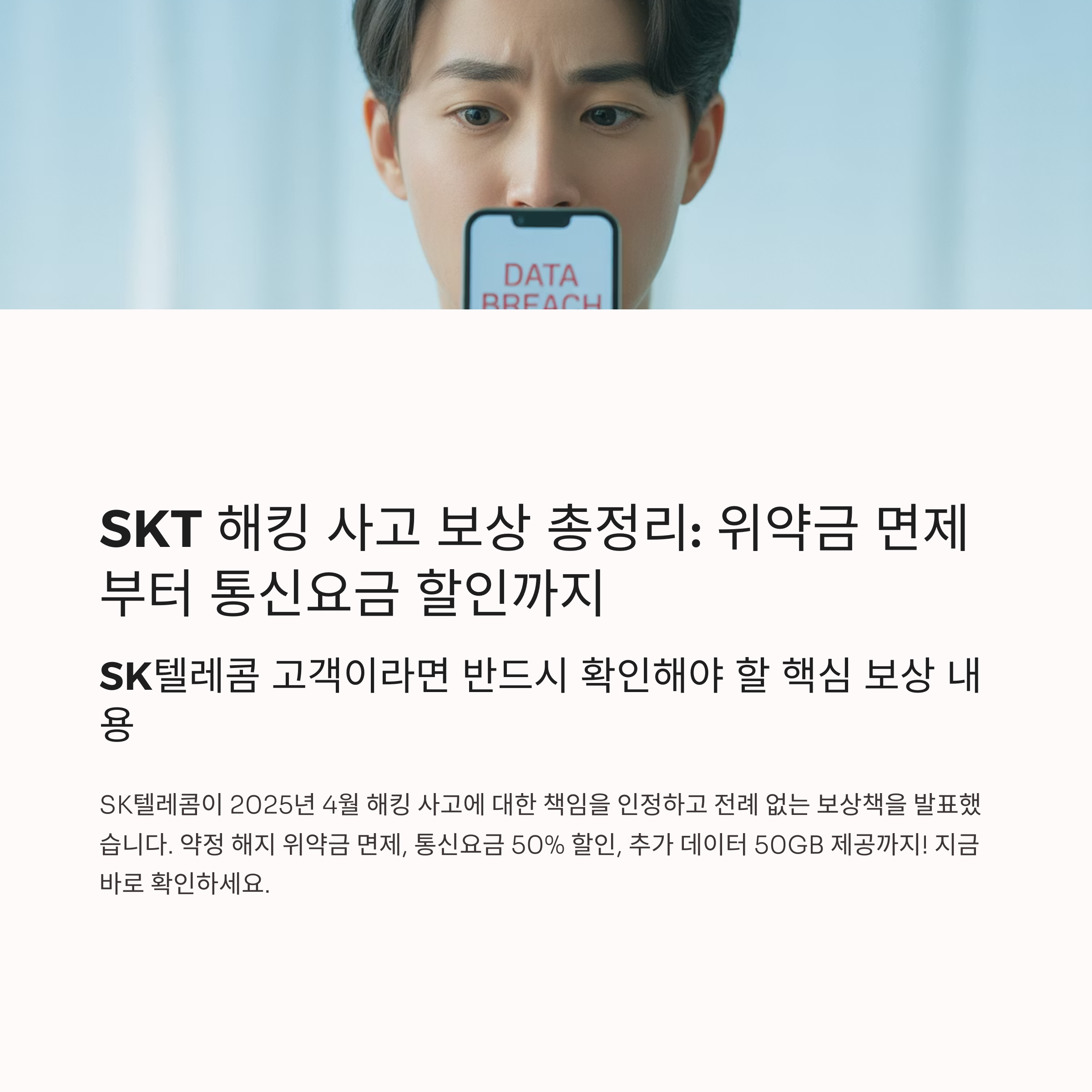여행 떠나기 전에 해지할 계획이라면, 지금이 마지막 기회입니다2025년 4월 18일 발생한 SK텔레콤 해킹 사고 이후, SKT는 책임을 인정하며7월 14일까지 해지한 고객에 한해 위약금 전면 면제를 시행