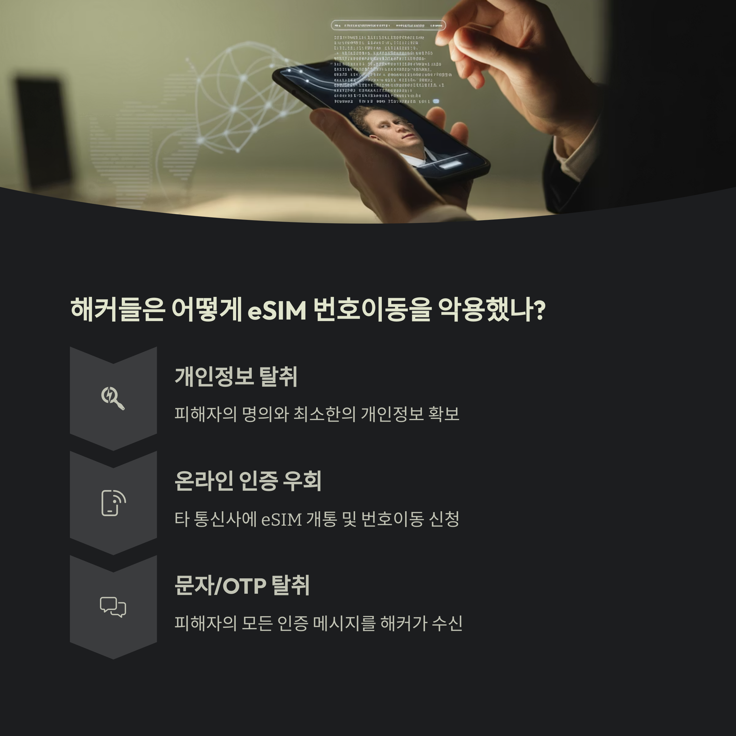 eSIM 번호이동을 당하는 피해 사례가 이어지고 있습니다.