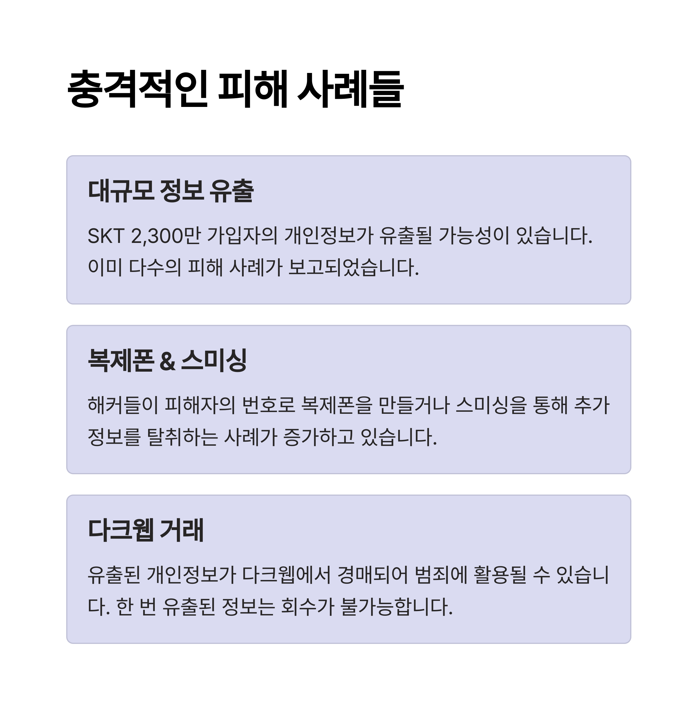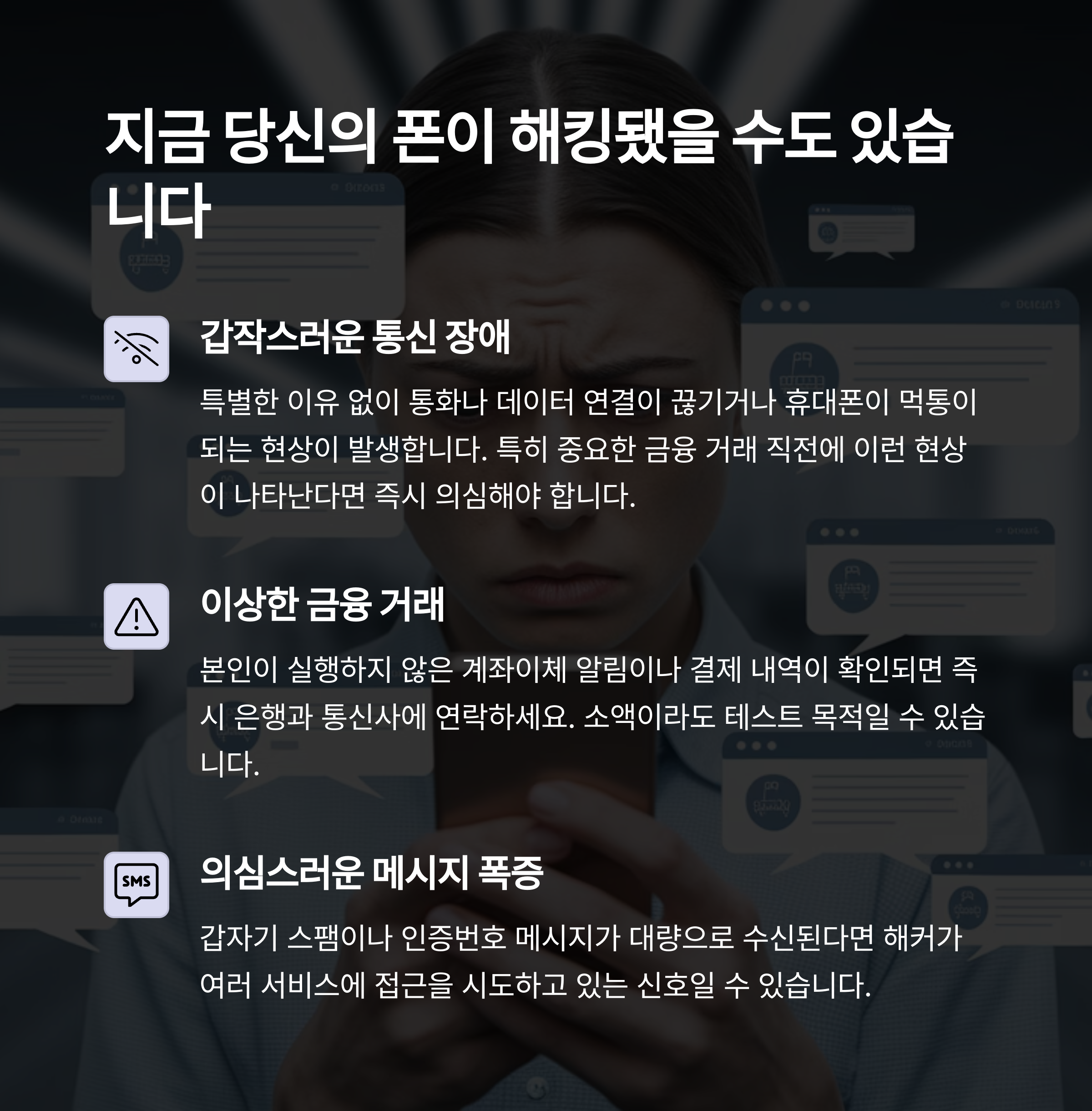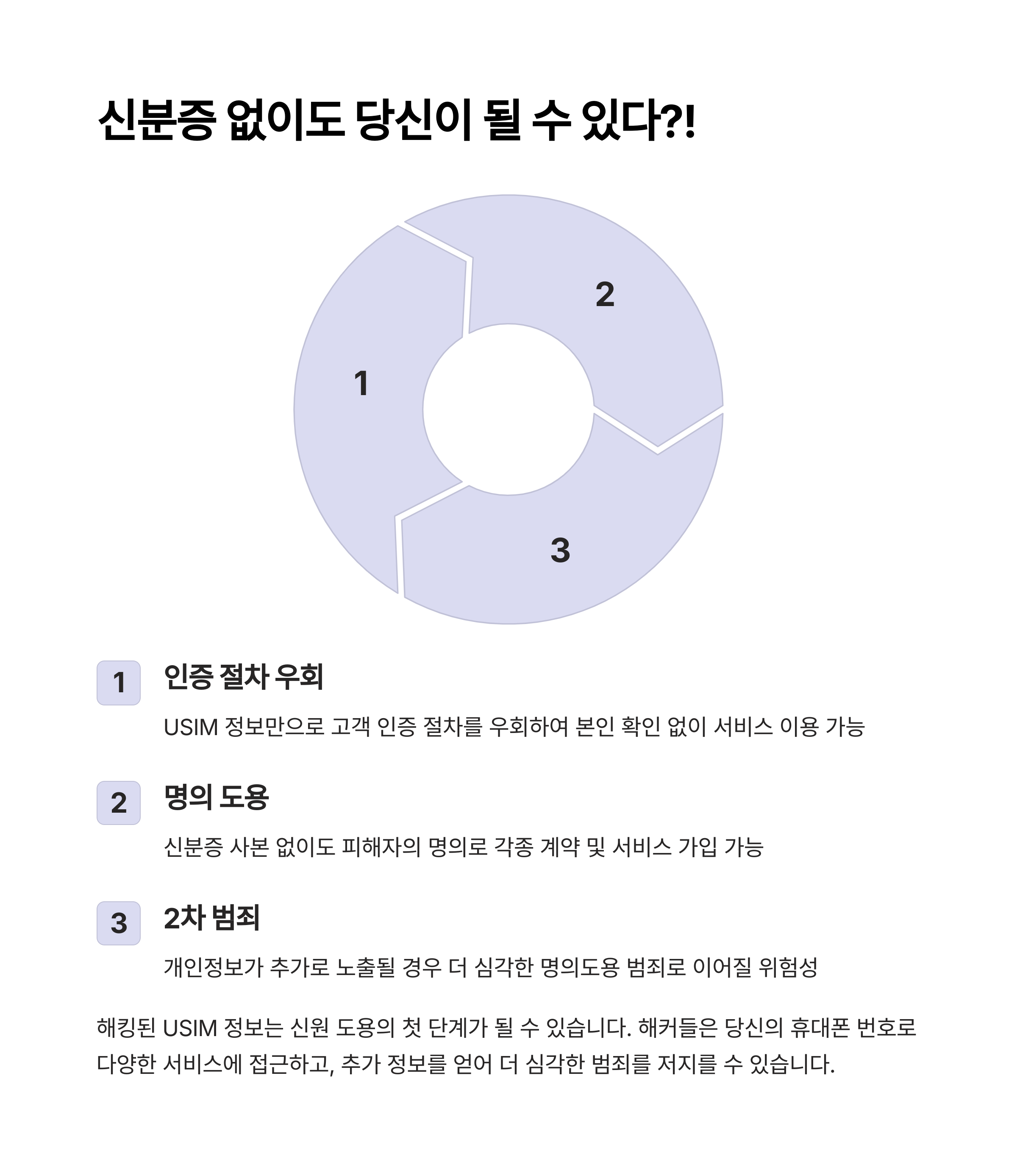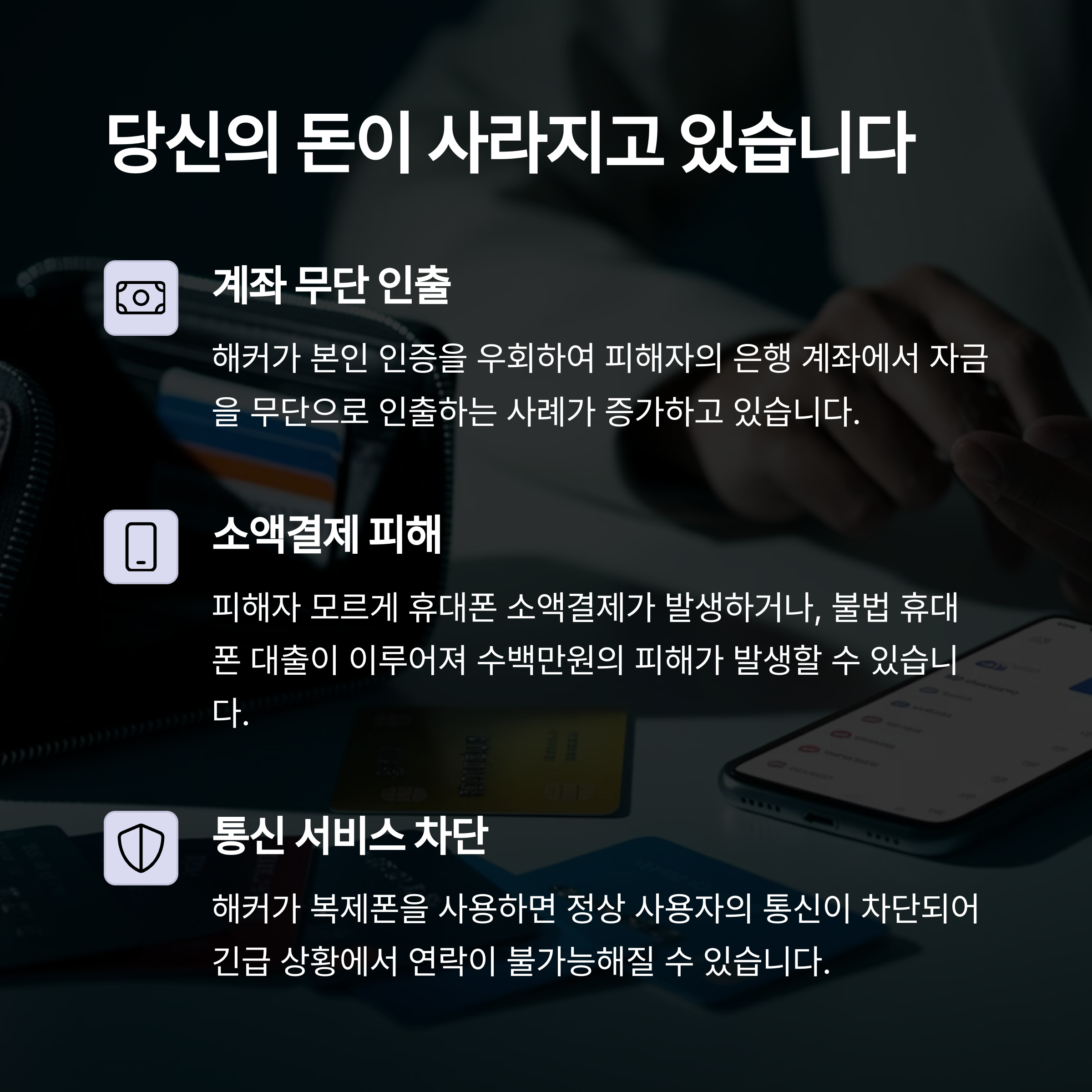 특히 통신사 유심(USIM)을 통한 공격은 개인의 금융과 일상을 모두 위협할 수 있는 실질적인 위험입니다.