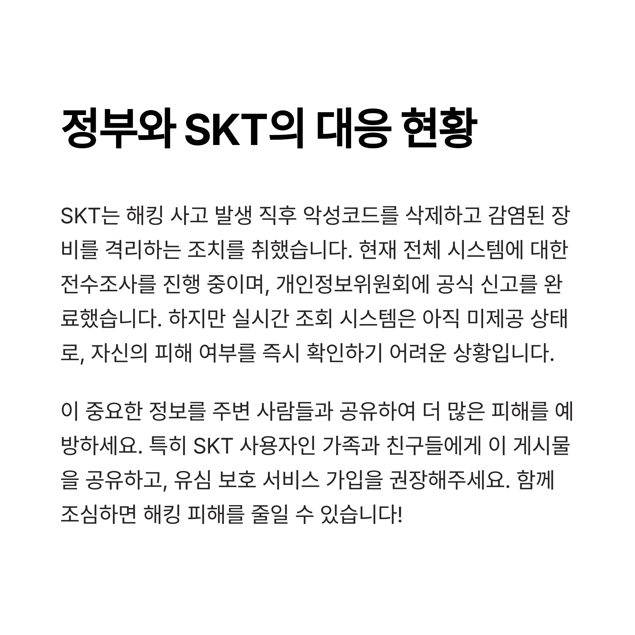 정부와 SKT 역시 이 사태를 심각하게 인식하고
